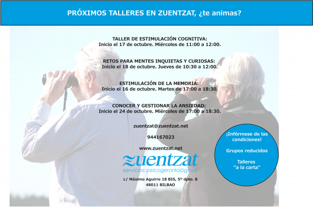 Este lunes día 5 de noviembre hemos tenido el placer de entregar los premios del sorteo «Vacaciones en Acción para Mentes Inquietas» en ZUENTZAT Servicios Psicogerontológicos. Disfrutamos de un rato muy agradable con Esther, Mariano y Emiliana, charlando sobre la importancia de mantener una actitud vital activa y participativa. Compartimos experiencias de participación y fomento de…